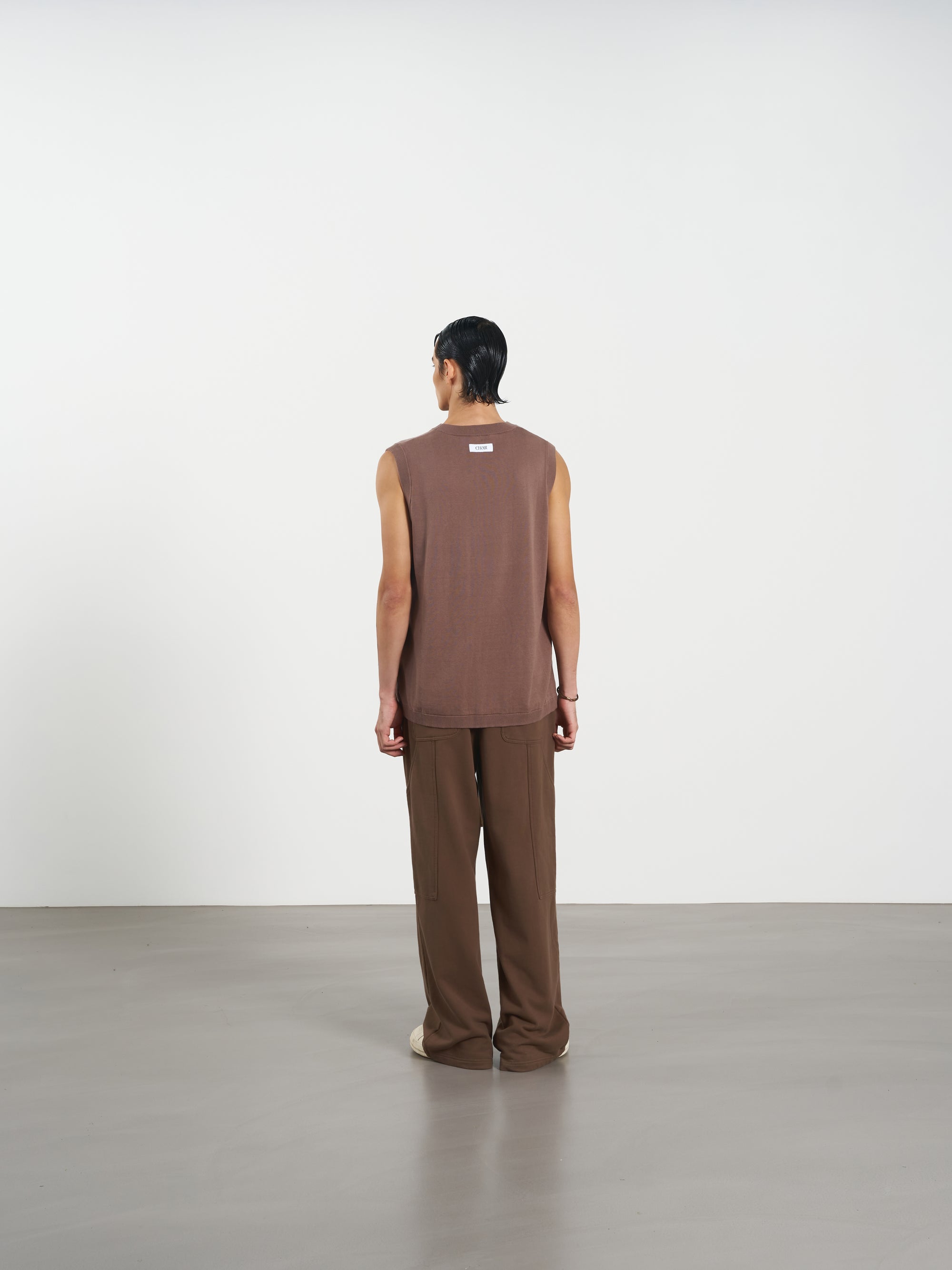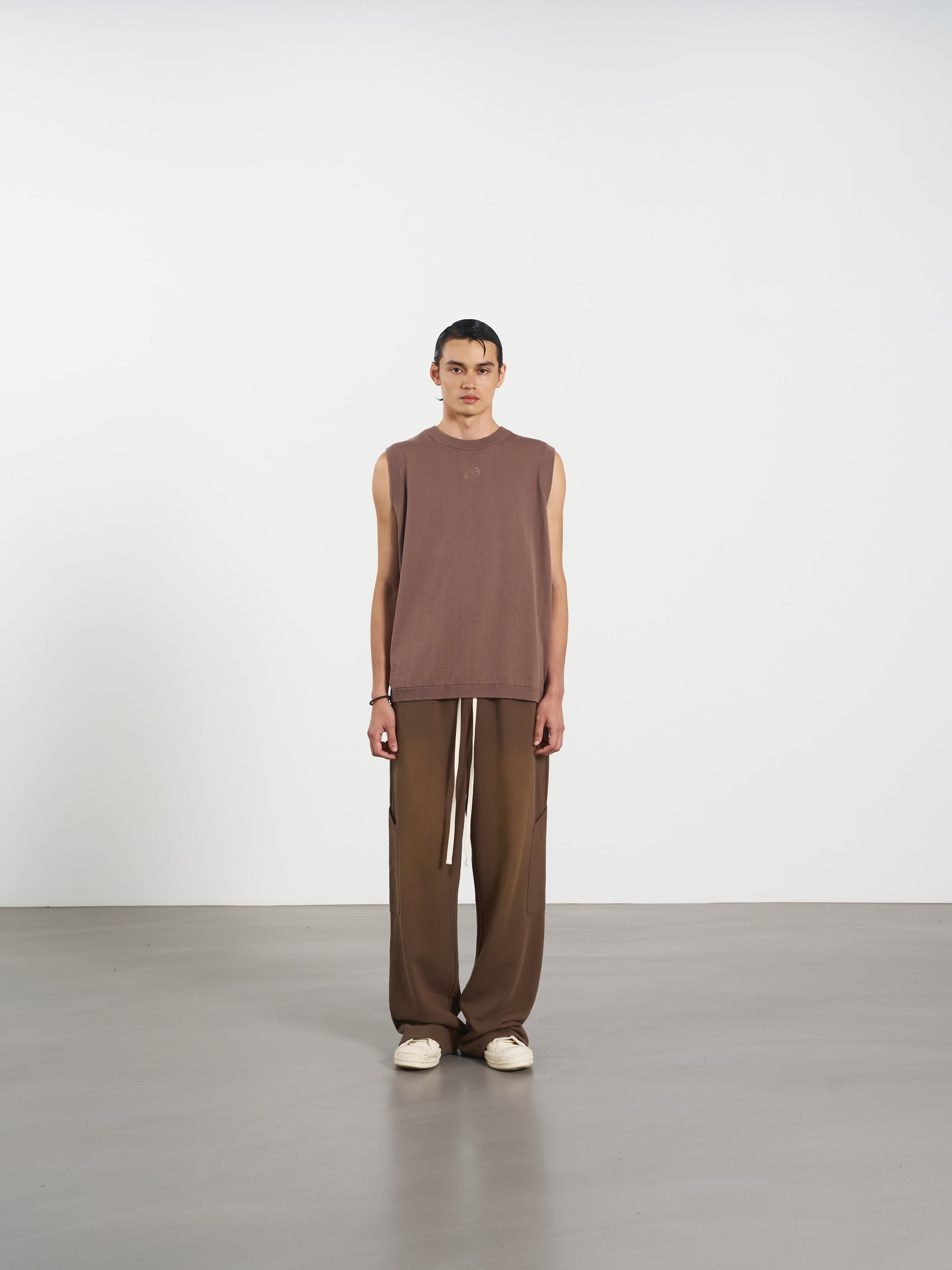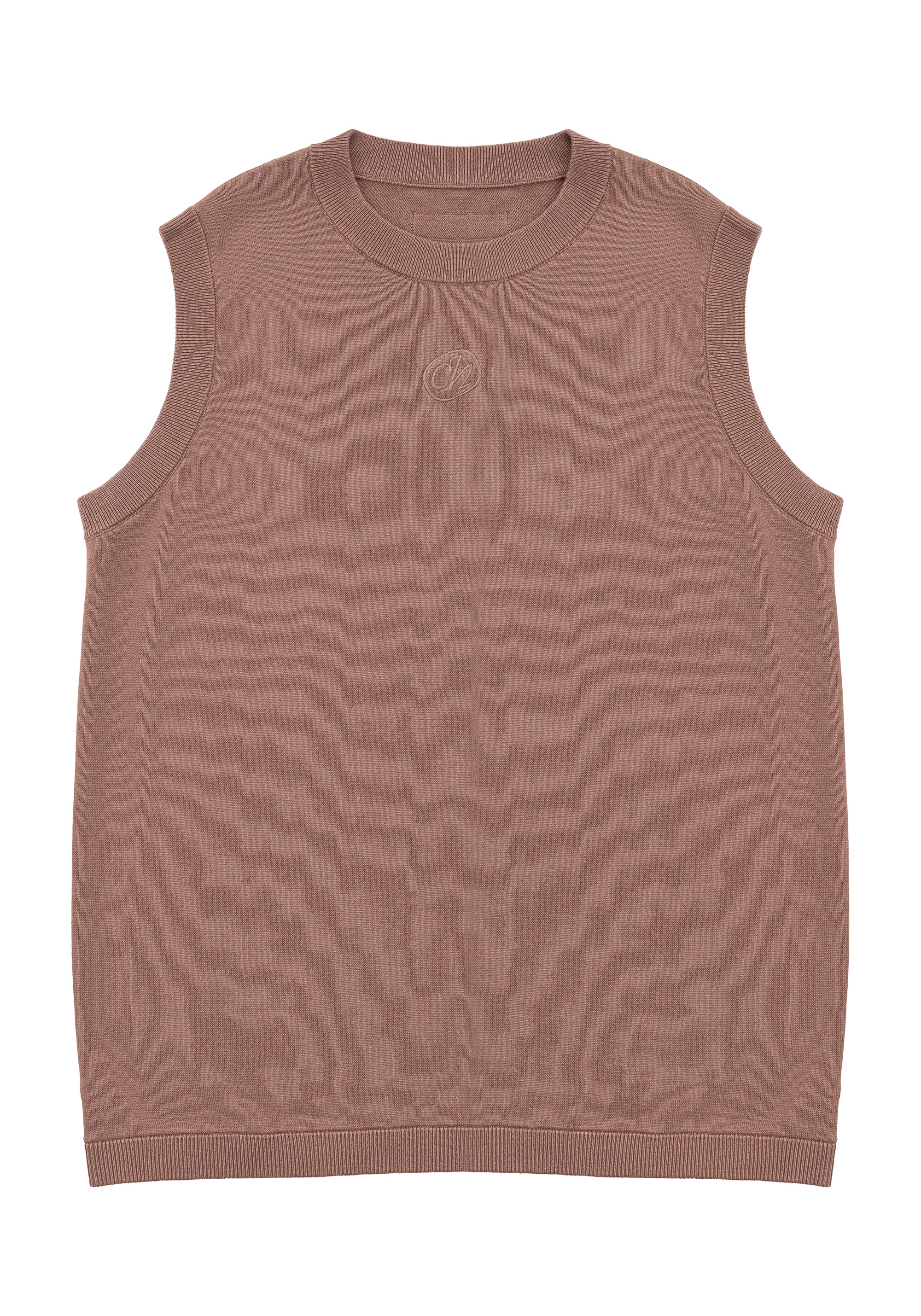 Ribbed Tank Top 修身刺繡針織背心 - KHAKI