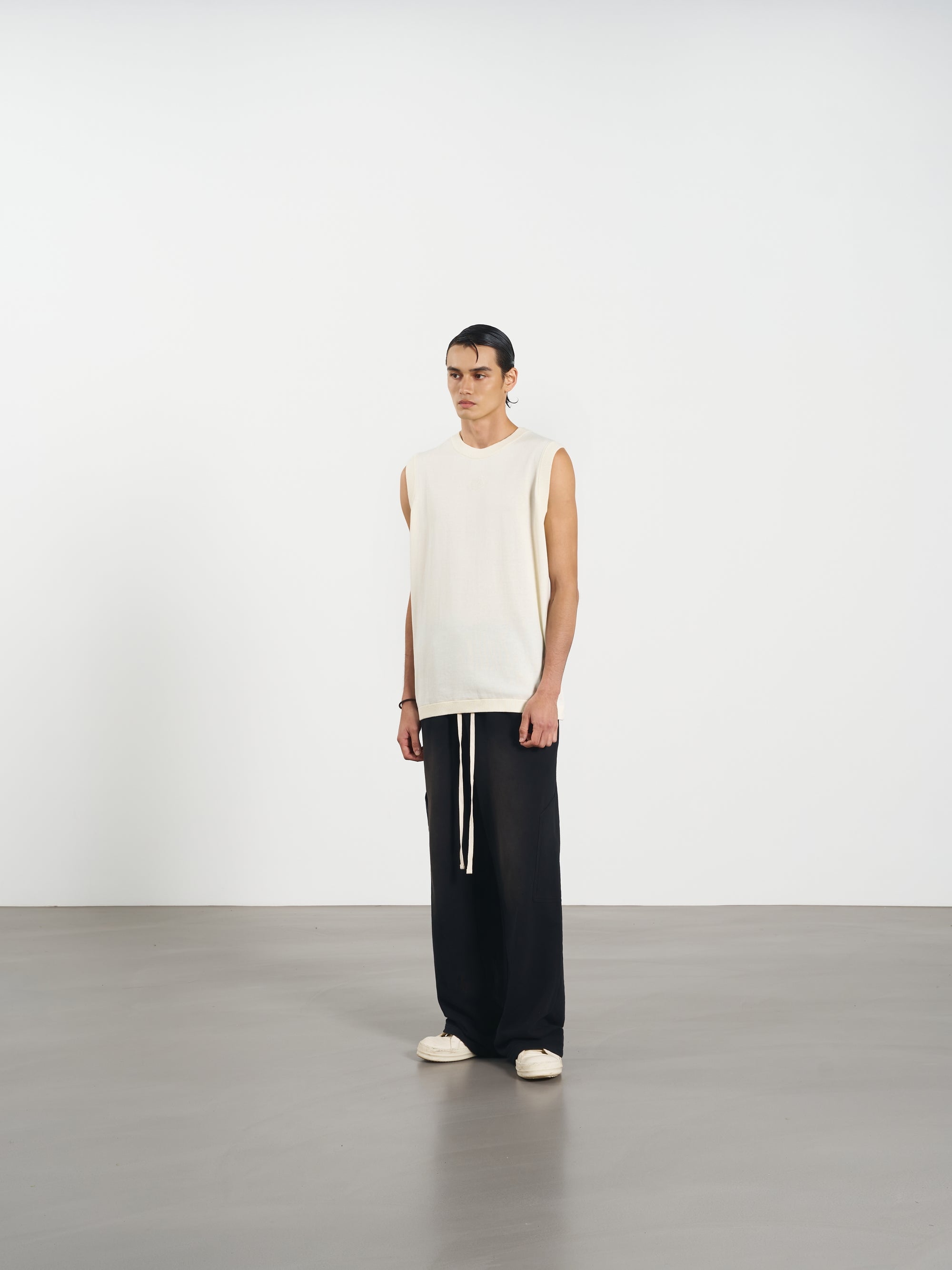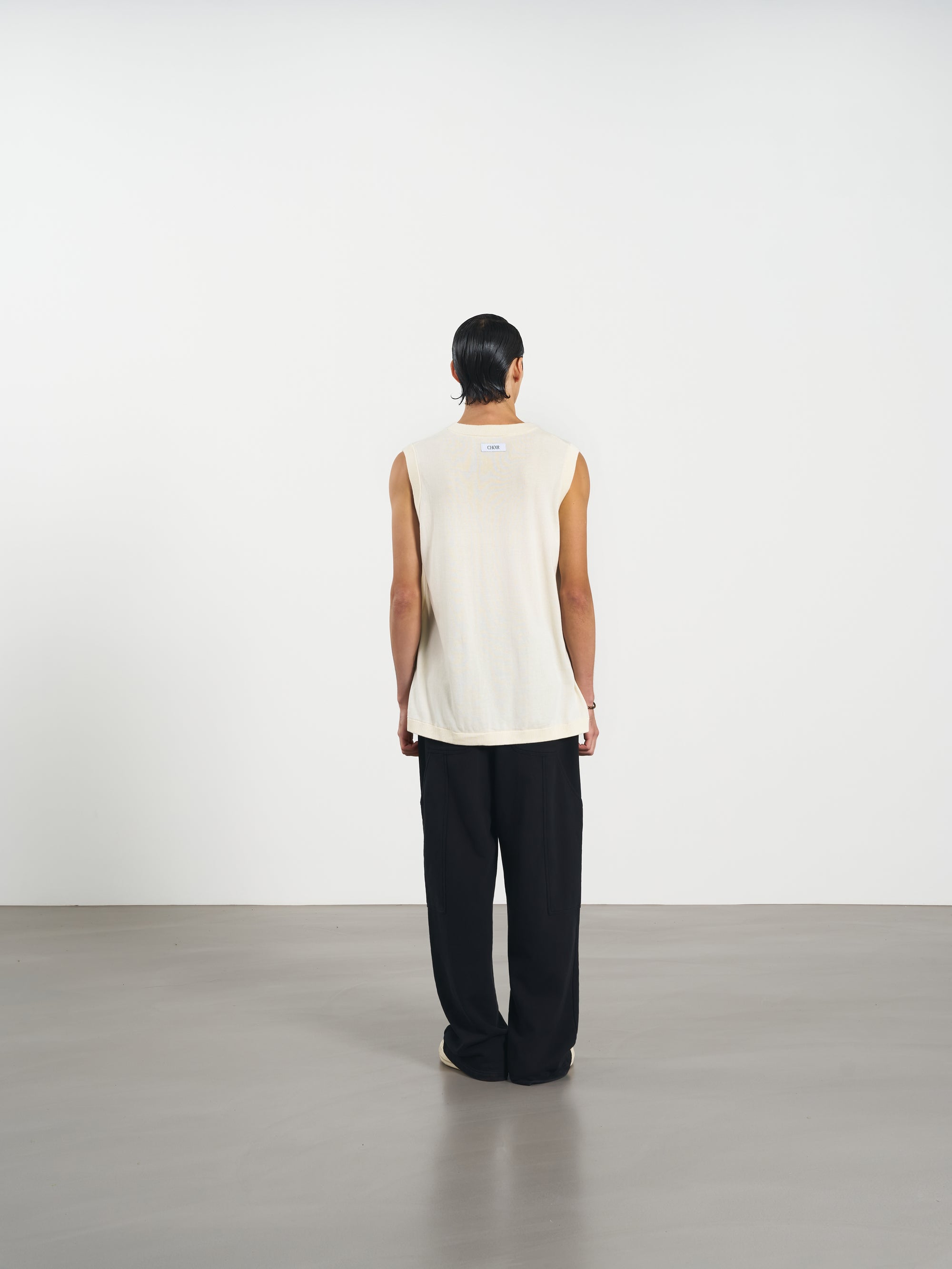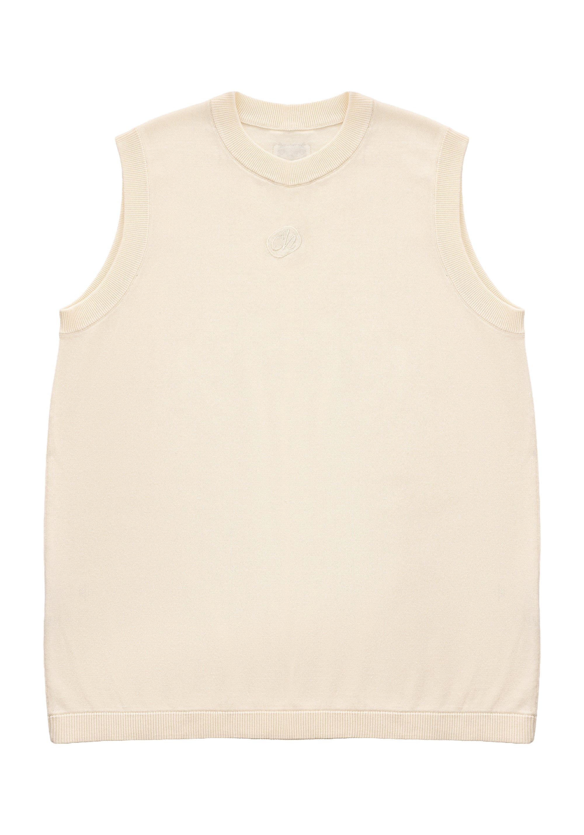 Ribbed Tank Top 修身刺繡針織背心 - BEIGE