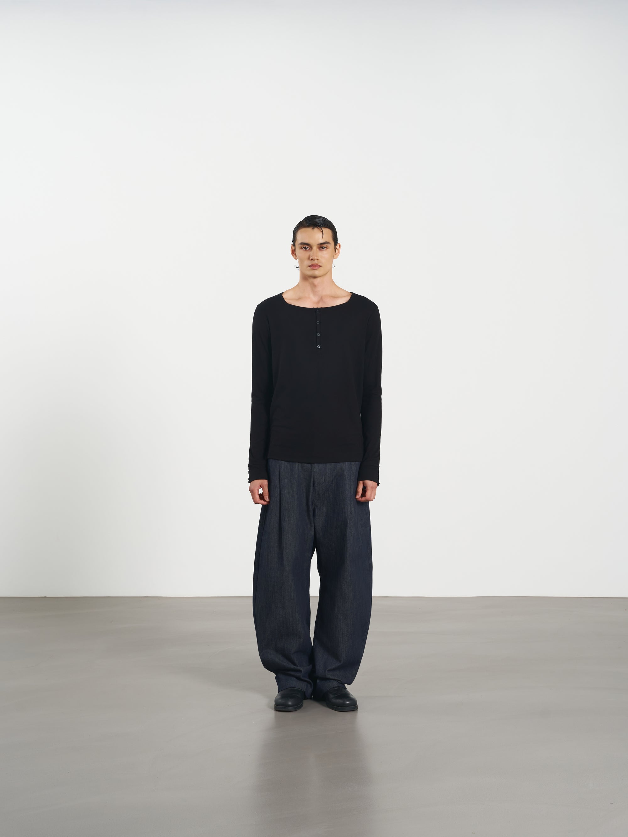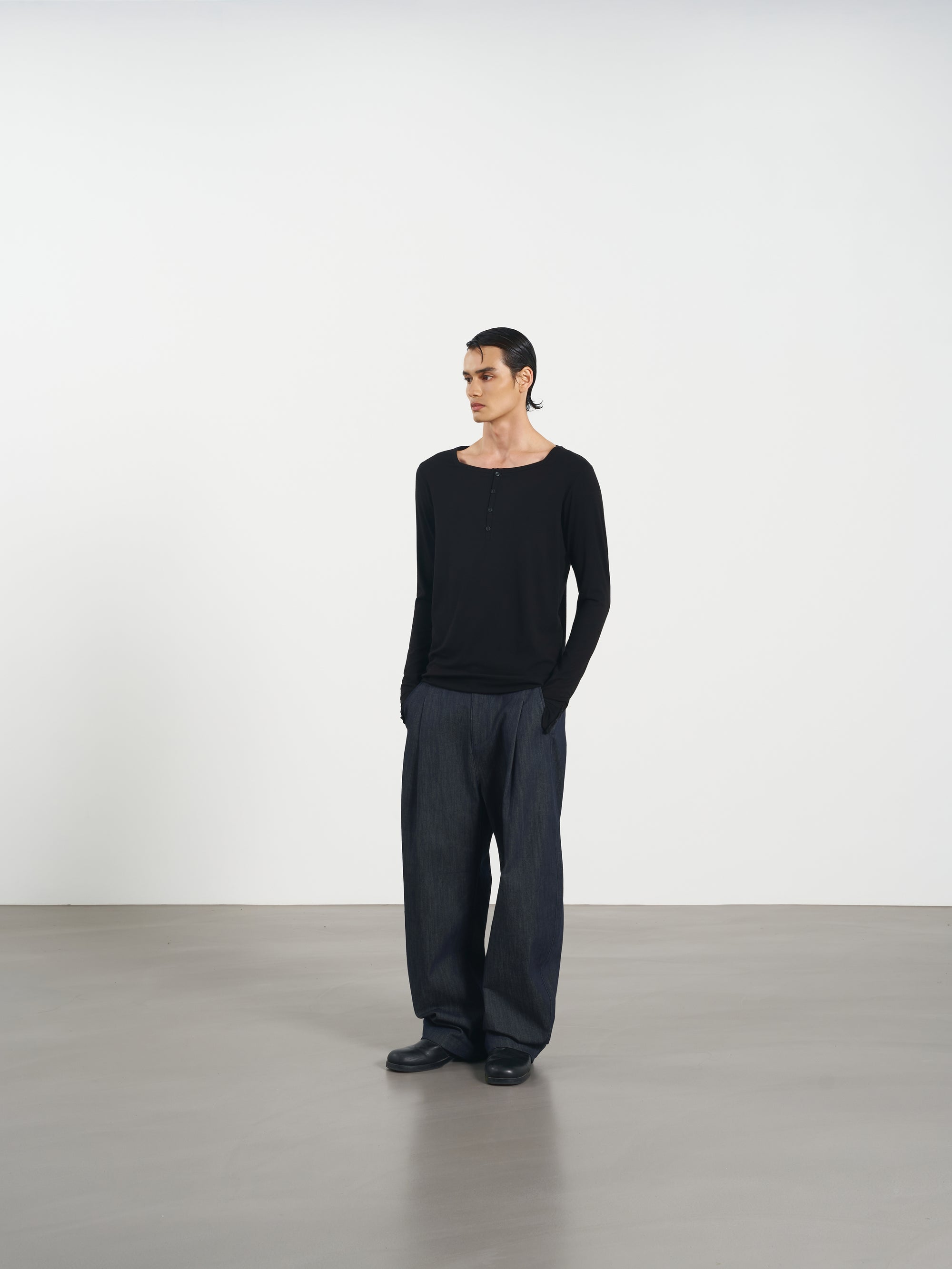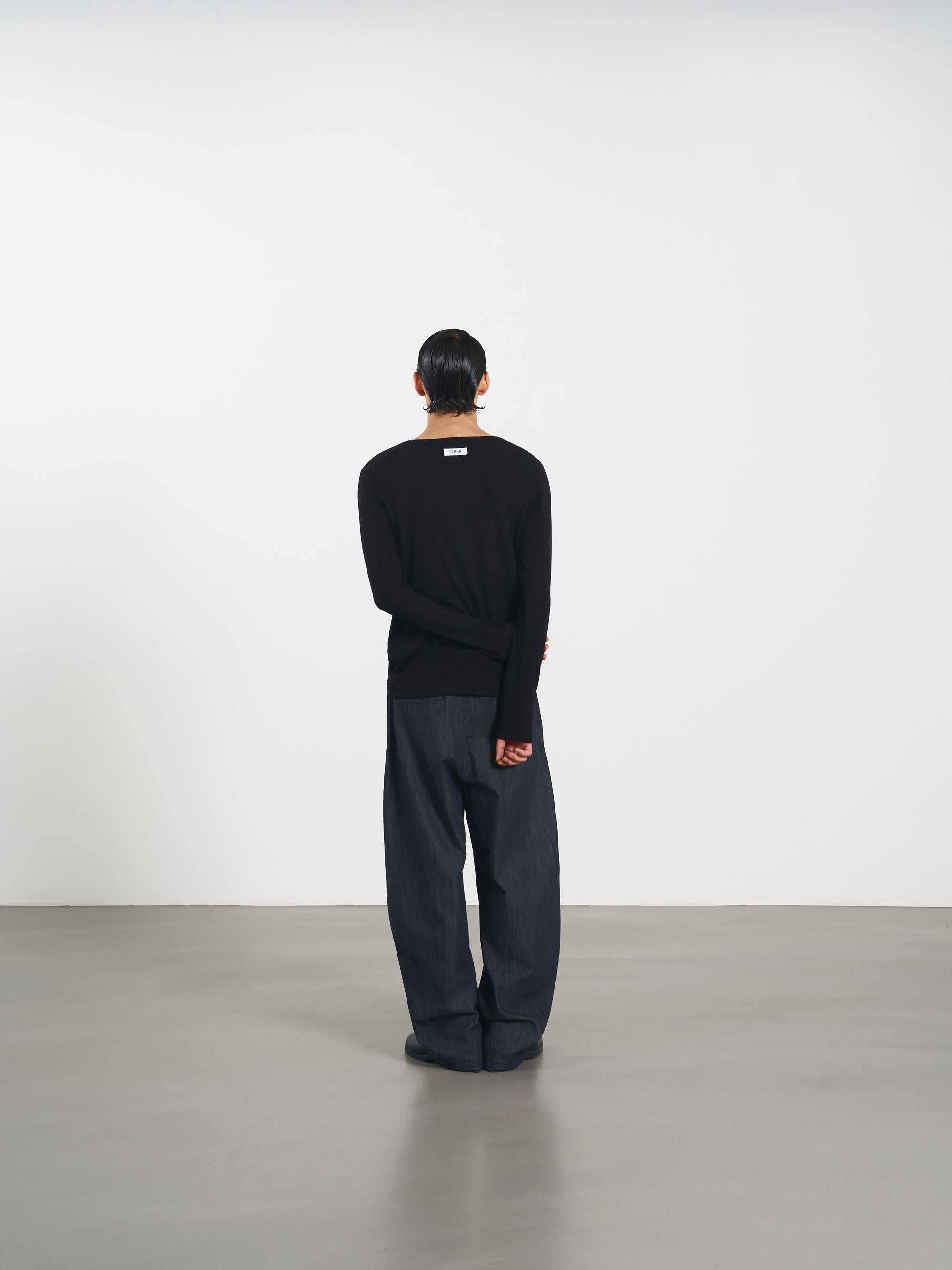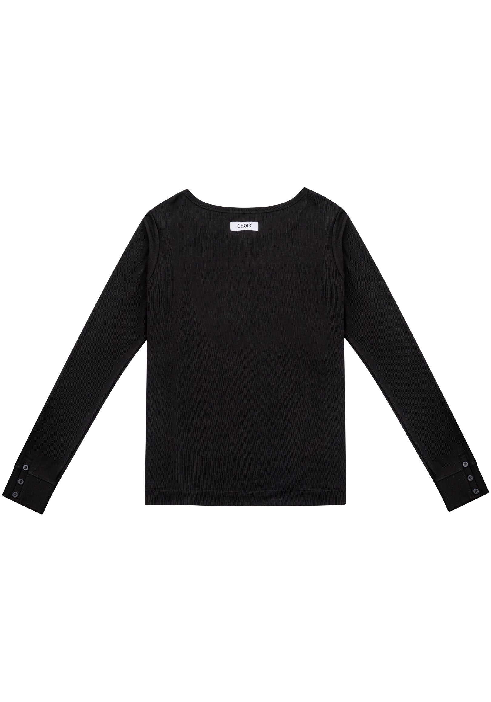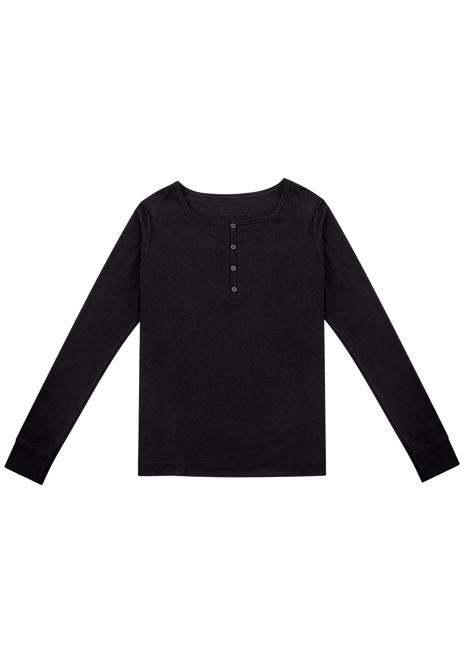Rib Knit Tee 方領羅紋打底長袖 - Black