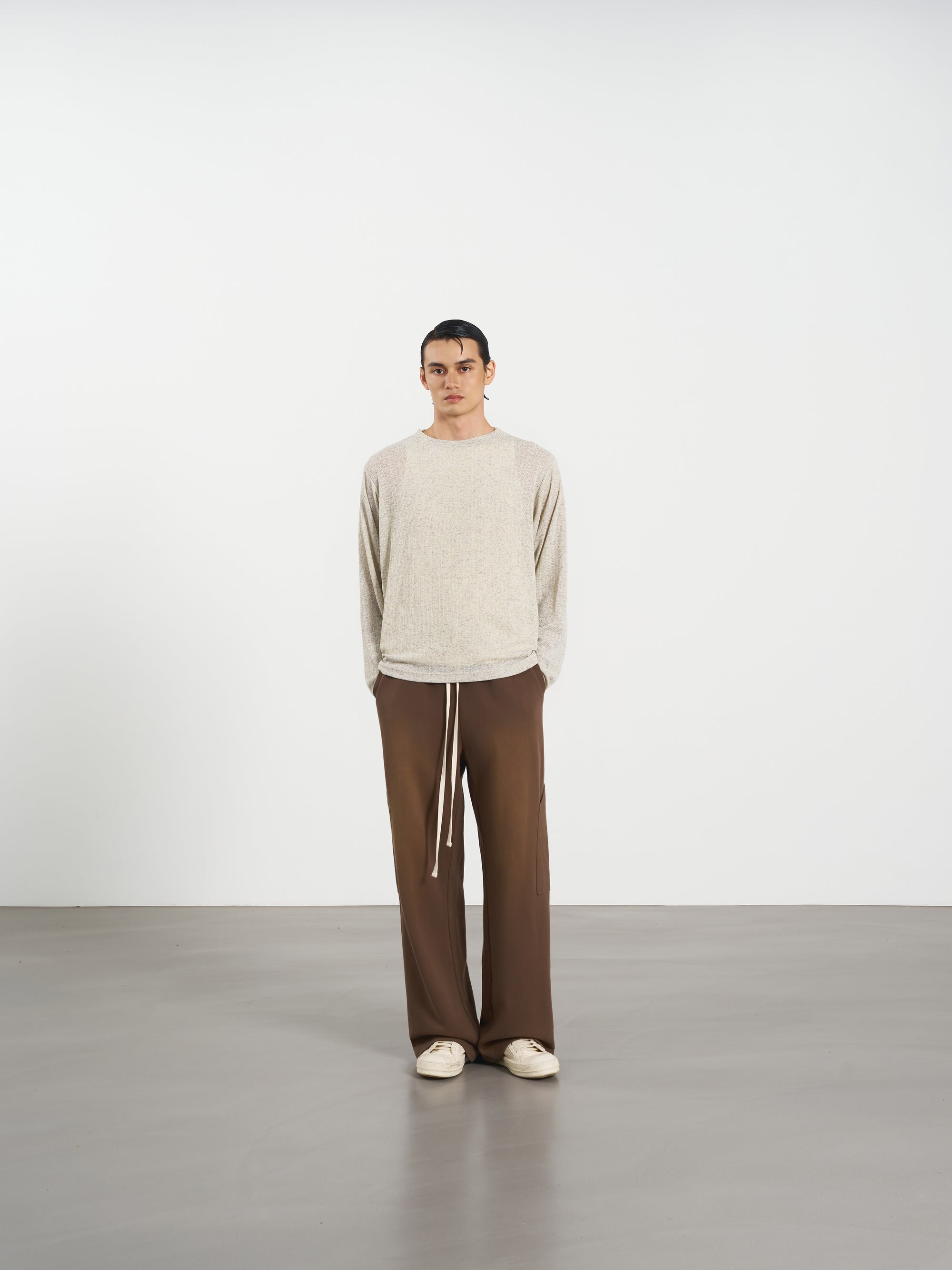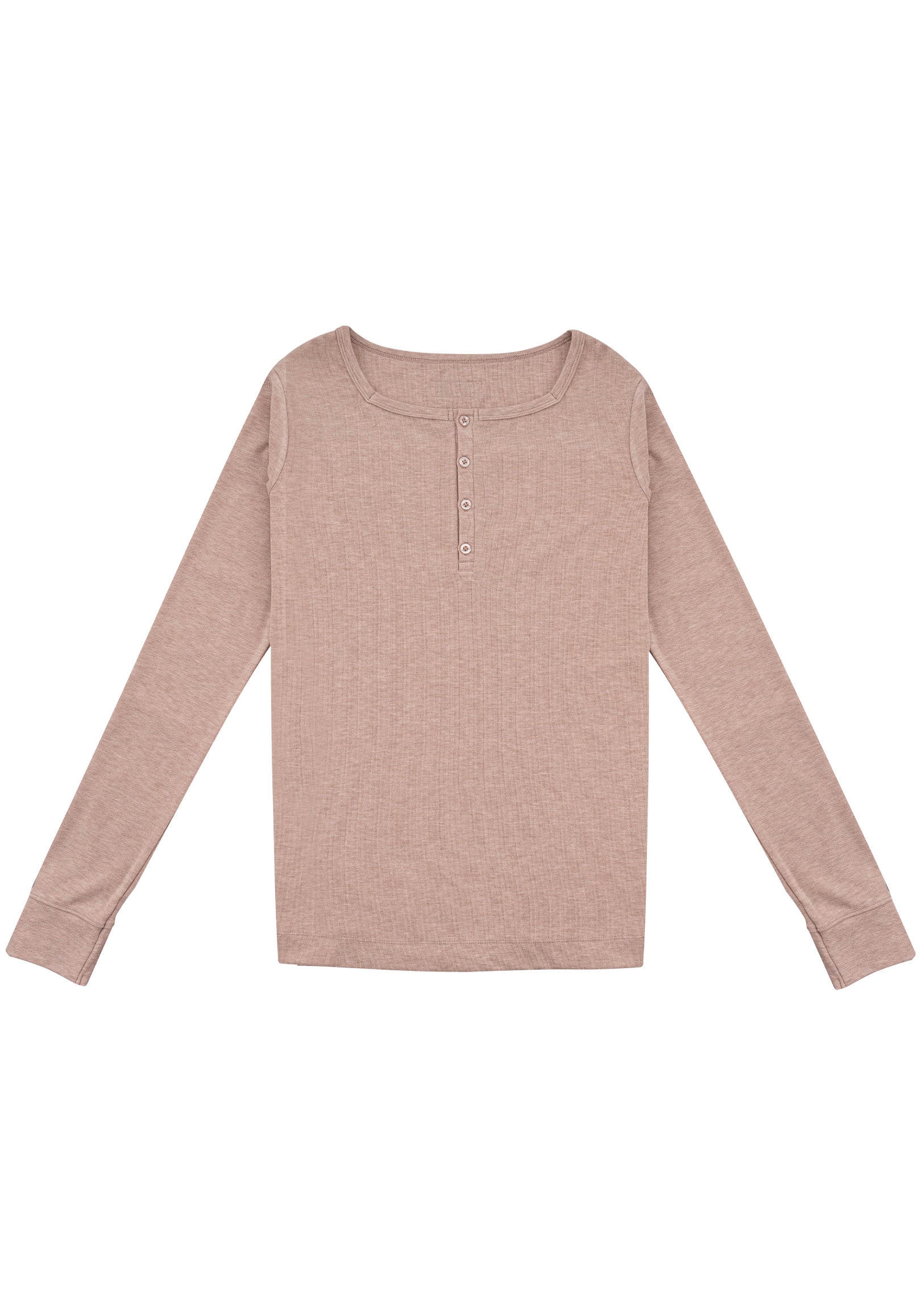 Rib Knit Tee 方領羅紋打底長袖 - Khaki