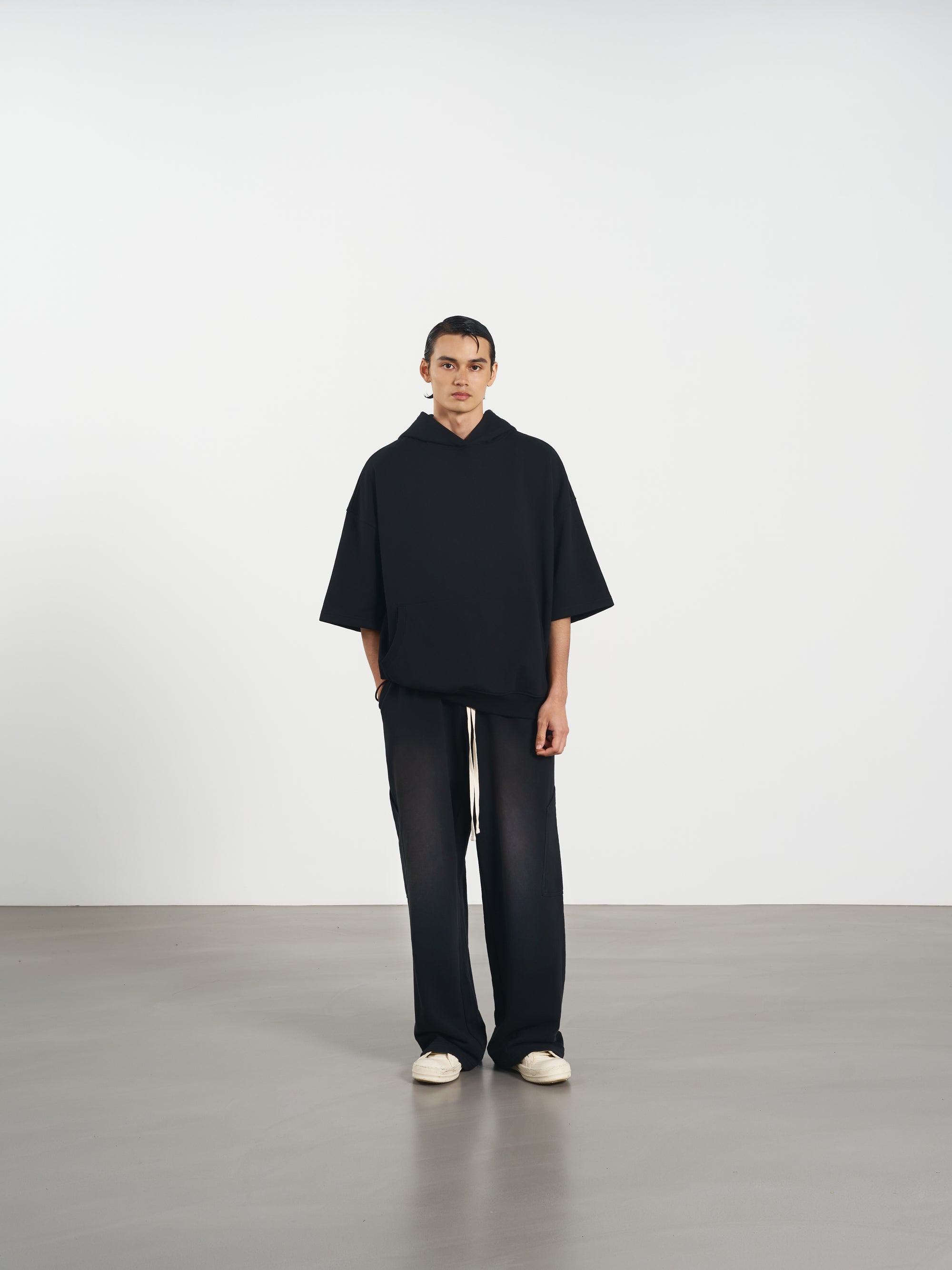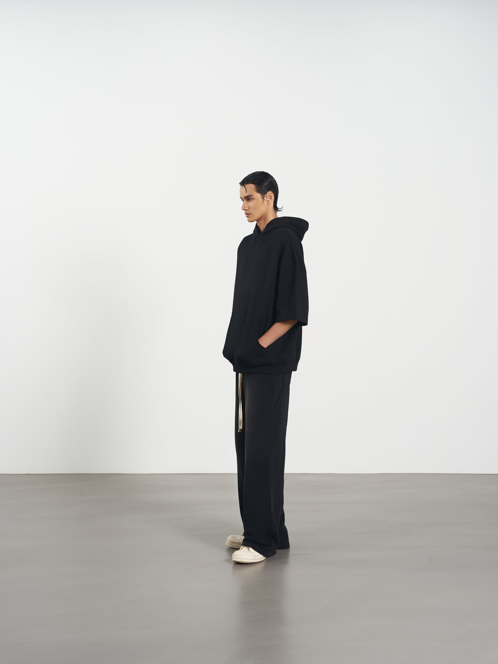 Half Hoodie 短袖連帽上衣 - Black