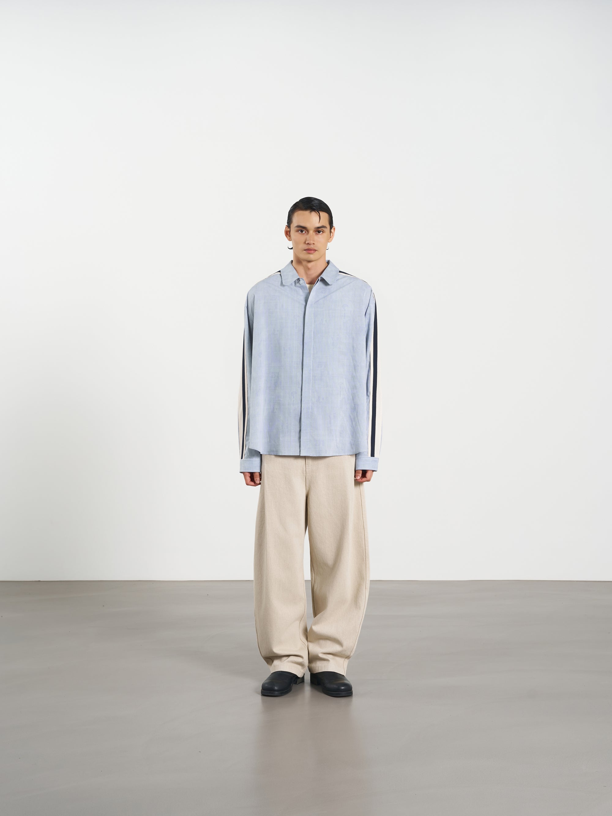 Stripe Long Shirt 休閒直條襯衫- Dark Gray