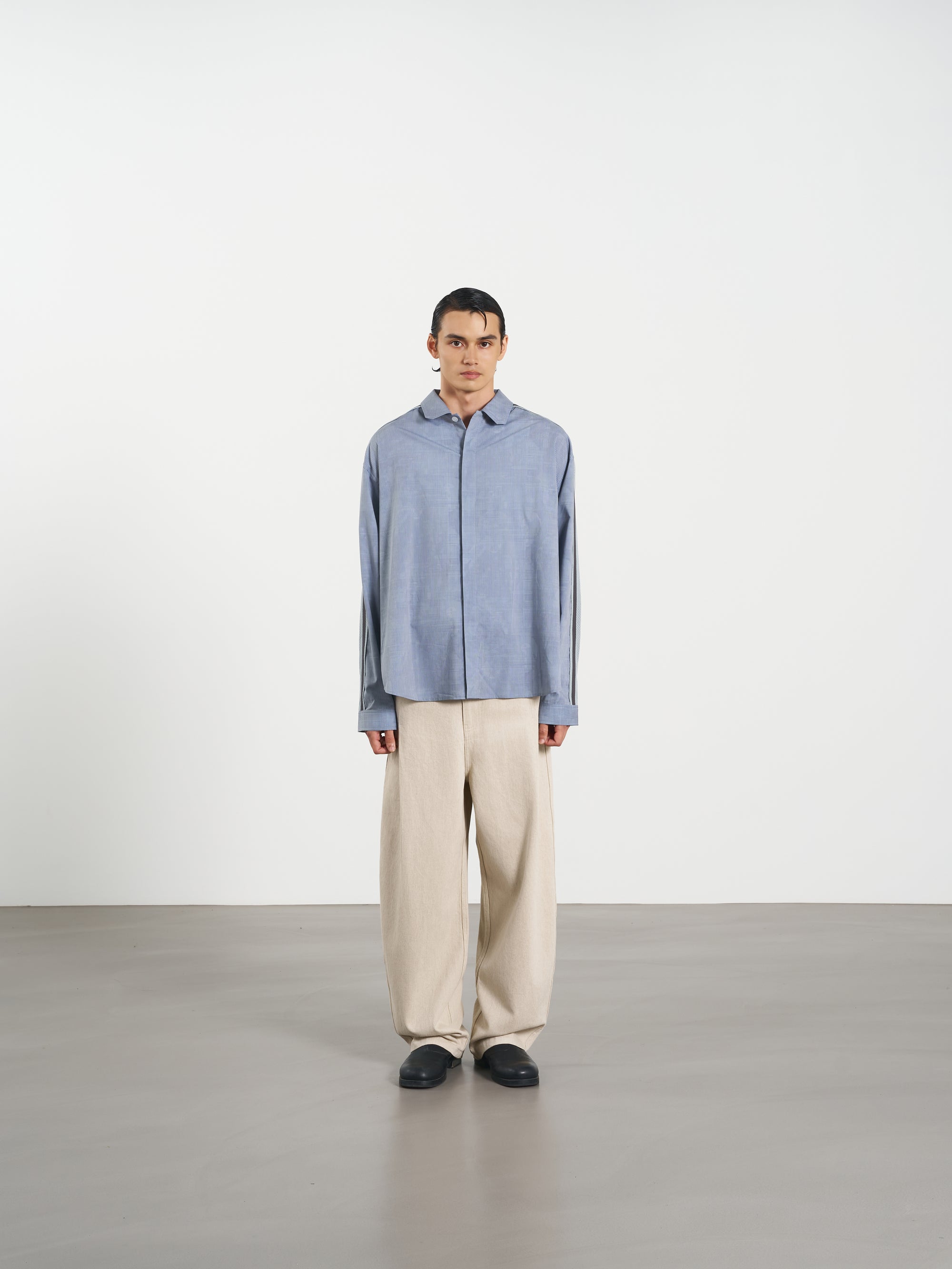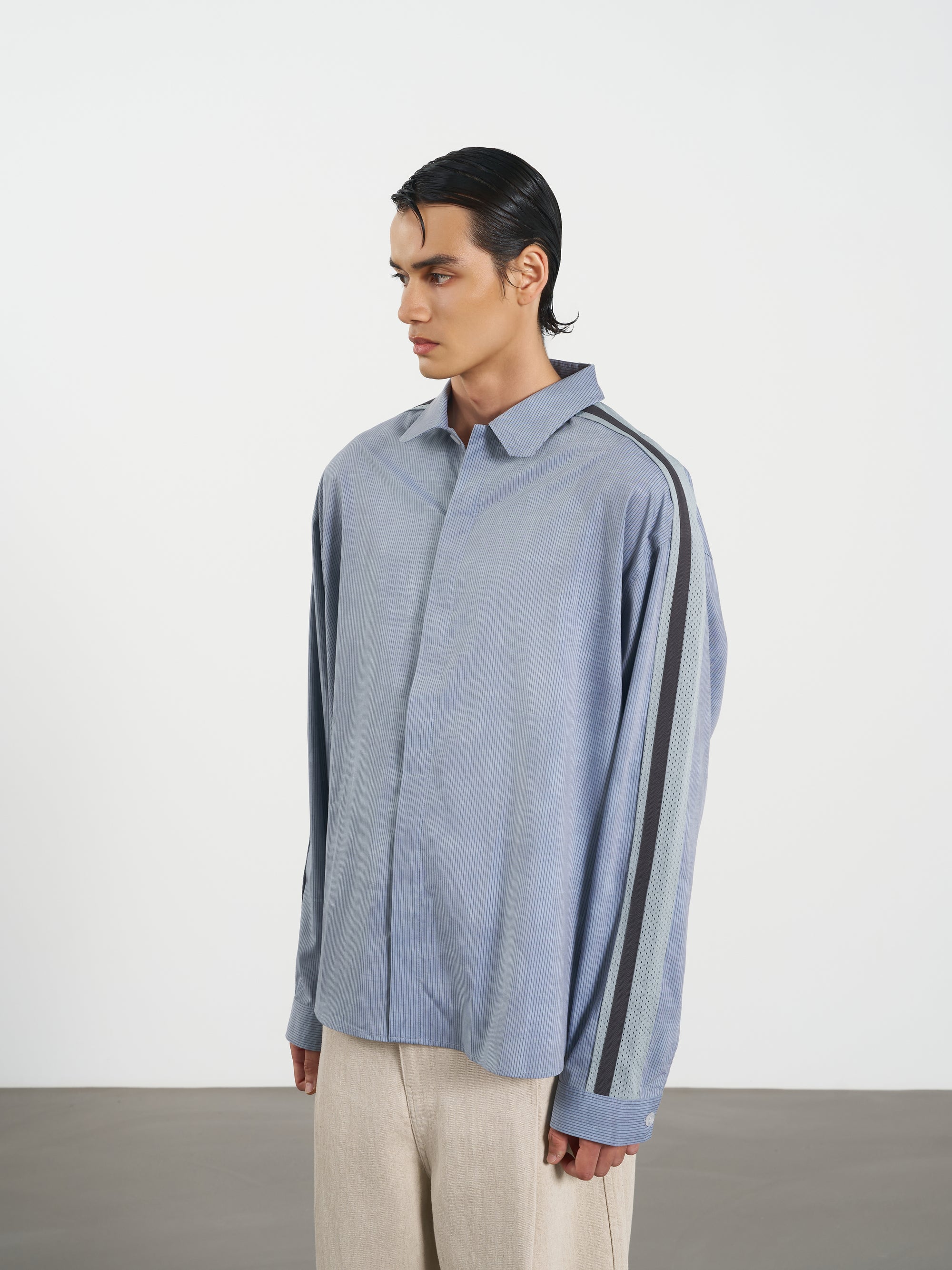 Stripe Long Shirt 休閒直條襯衫-Gray