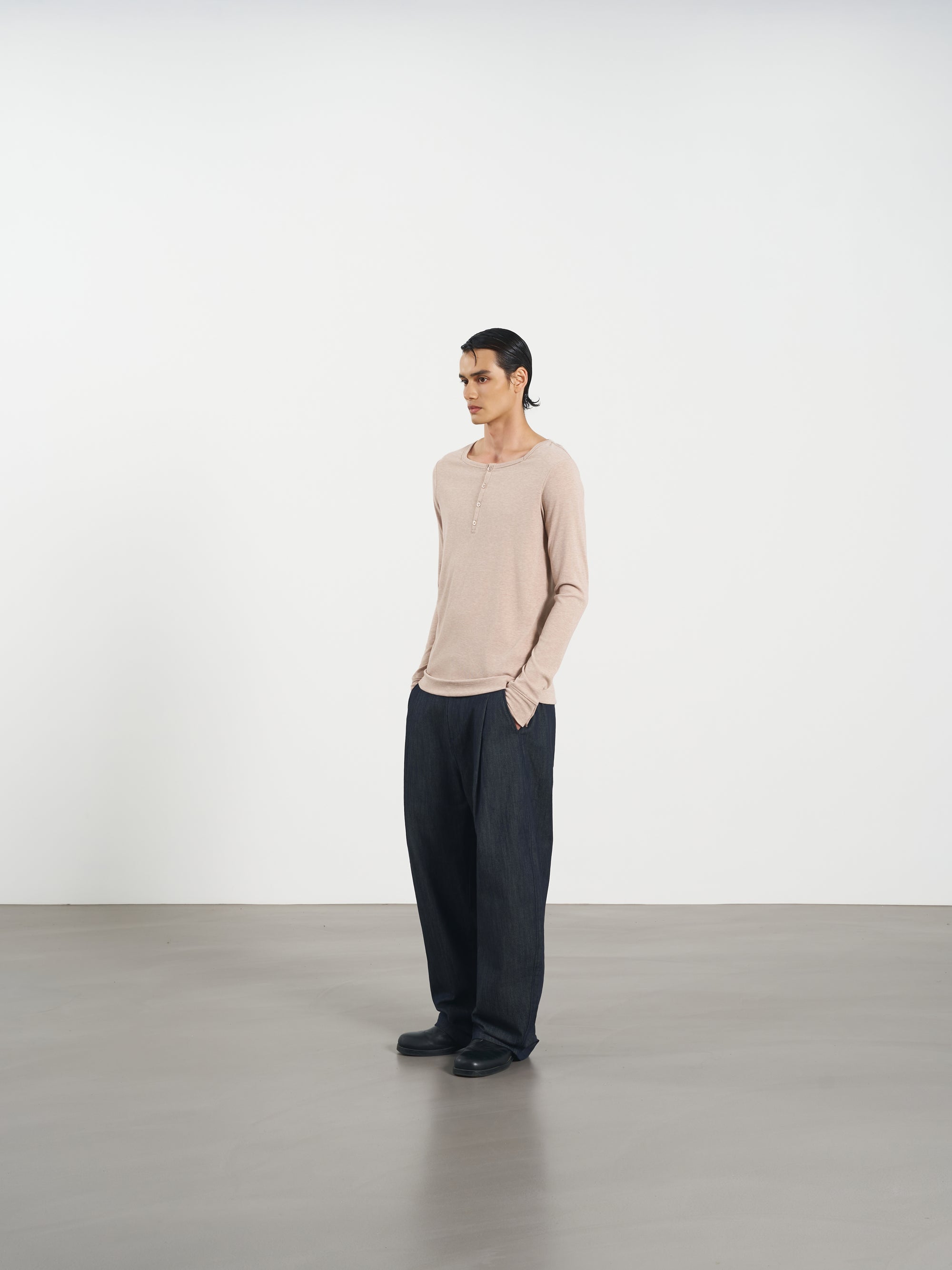 Rib Knit Tee 方領羅紋打底長袖 - Dark Gray